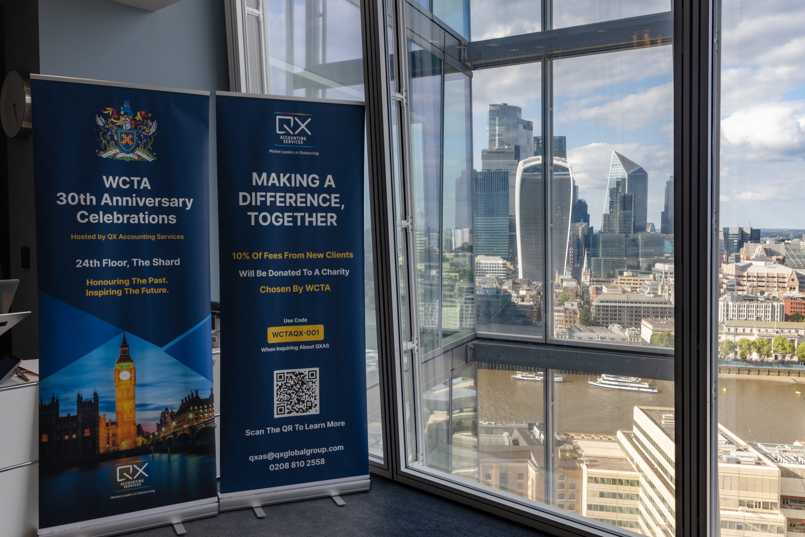 On Thursday, 8th May, many members gathered to celebrate the thirtieth anniversary of the Company – on the 24th floor of the Shard, on a glorious evening with panoramic views overlooking the City and beyond. This location was all thanks to the hospitality of QX Accounting Services, and to Craig Chatwin and Pramith Naidu in particular.