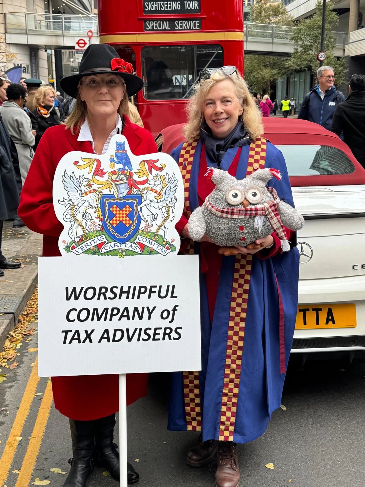 This year was the First Lady Mayor’s Show as Dame Susan Langley, the third lady to occupy the office, has styled herself as Lady Mayor, and it was a great joy and a huge privilege to be part of the Show. As usual the show, which is the longest and least rehearsed civic procession in the world, was an eclectic mix of the traditional and the wacky – livery companies, Gog and Magog, and representatives from institutions and organisations in the City. The floats represented some of the Lady Mayor’s interests, including for the first time a Premier League football team in the form of West Ham, as well as her mother company, the Insurers.