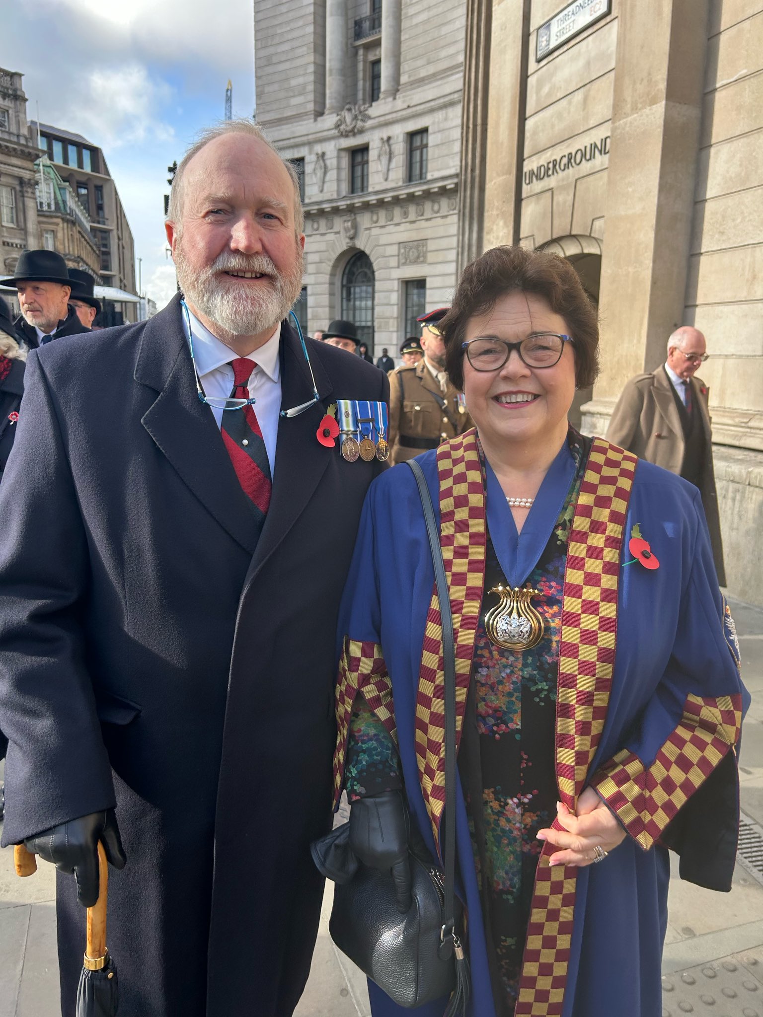 Following the service there was a scurry of Livery Company masters and wardens along Cheapside to the Royal Exchange, for the wreath laying and a march past Mansion House.
