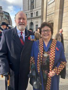 Having joined the Lady Mayor’s Show on 8 November, there was a change of tone the following day for the Master and the Upper Warden who, along with their consorts, attended the Service of Remembrance at St Paul’s and the wreath laying outside Royal Exchange.