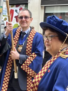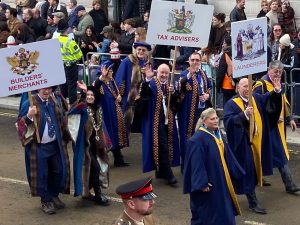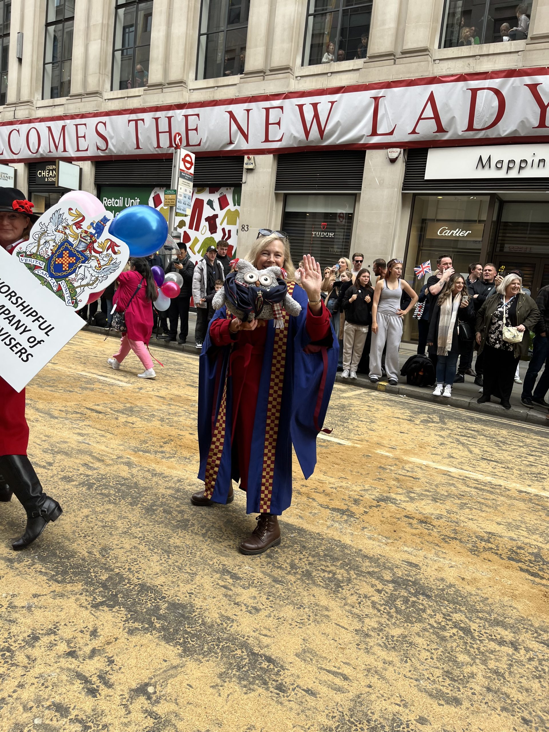 We were part of the Modern Companies, walking ahead of a WW II fire engine, and the reception from the crowds that had been up early to line the route of the procession was amazing. It is one of the most vibrant and fun events in the City’s calendar and a real joy to be walking with members of other companies. It is slightly surreal walking through the City on a Saturday in the middle of the road, waving at and high fiving those along the route, stopping in front of Mansion House to cheer the Lady Mayor.