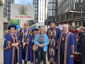 Saturday 8 November saw the Master and Wardens, in gowns and badges, assembled on London Wall suitably fortified by a glass of fizz (courtesy of the Nurses Company) and a bacon sandwich (thanks to Ironmongers Hall), waiting for the start of the Lady Mayor’s Show.